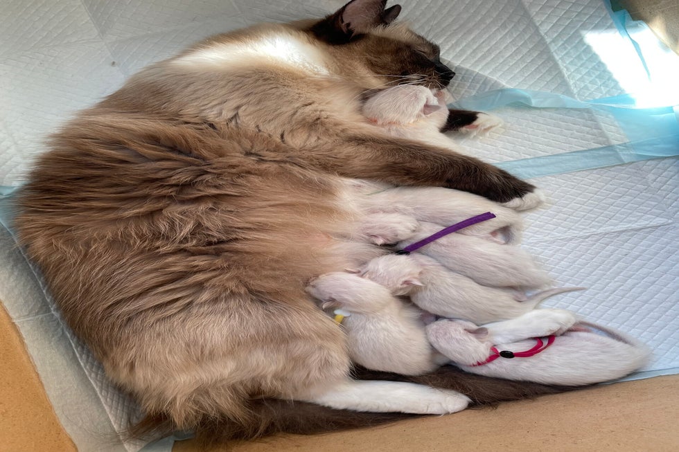 Na een langdurige bevalling is Cleo maandagavond bevallen van 6 kittens.
