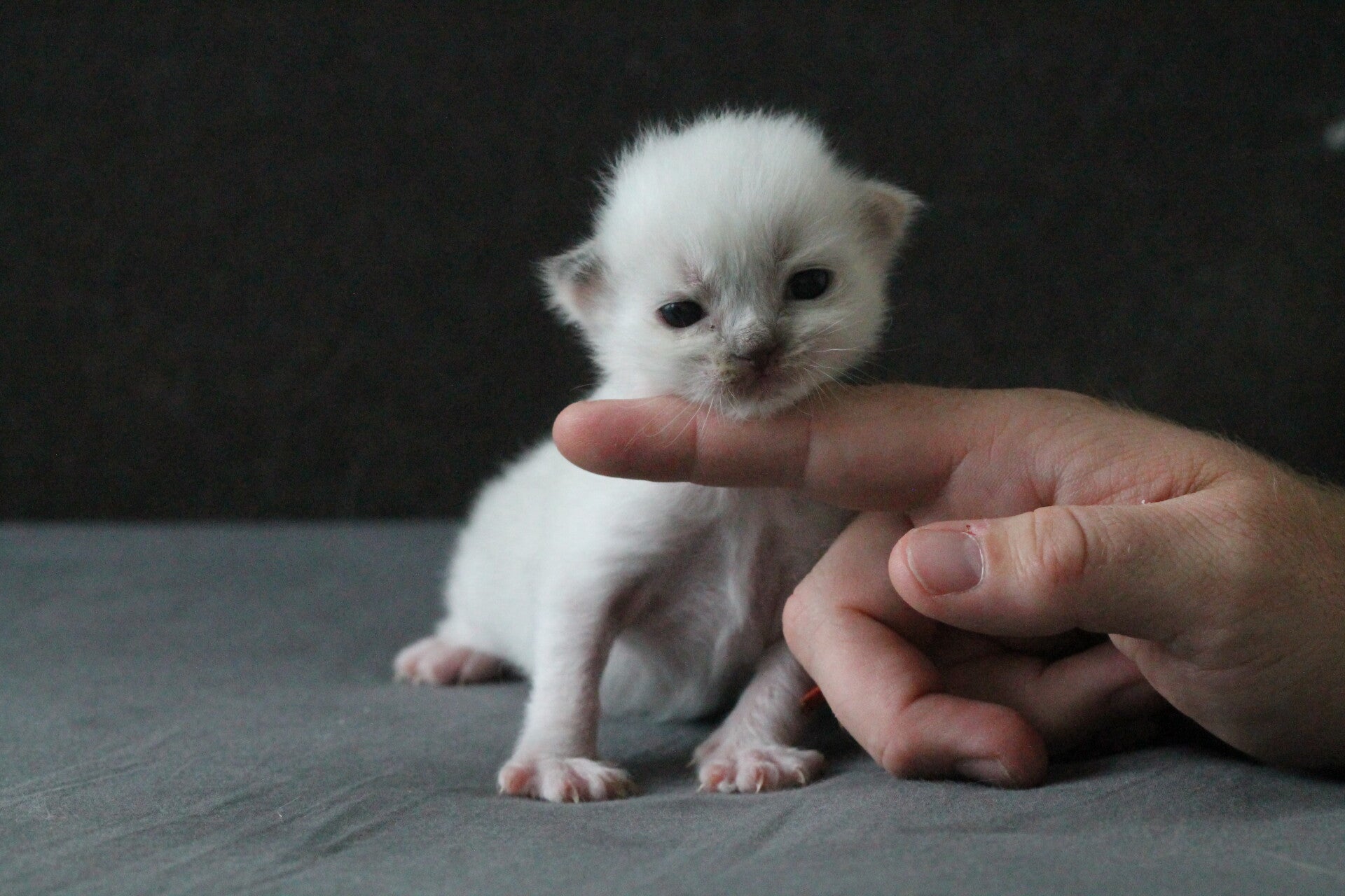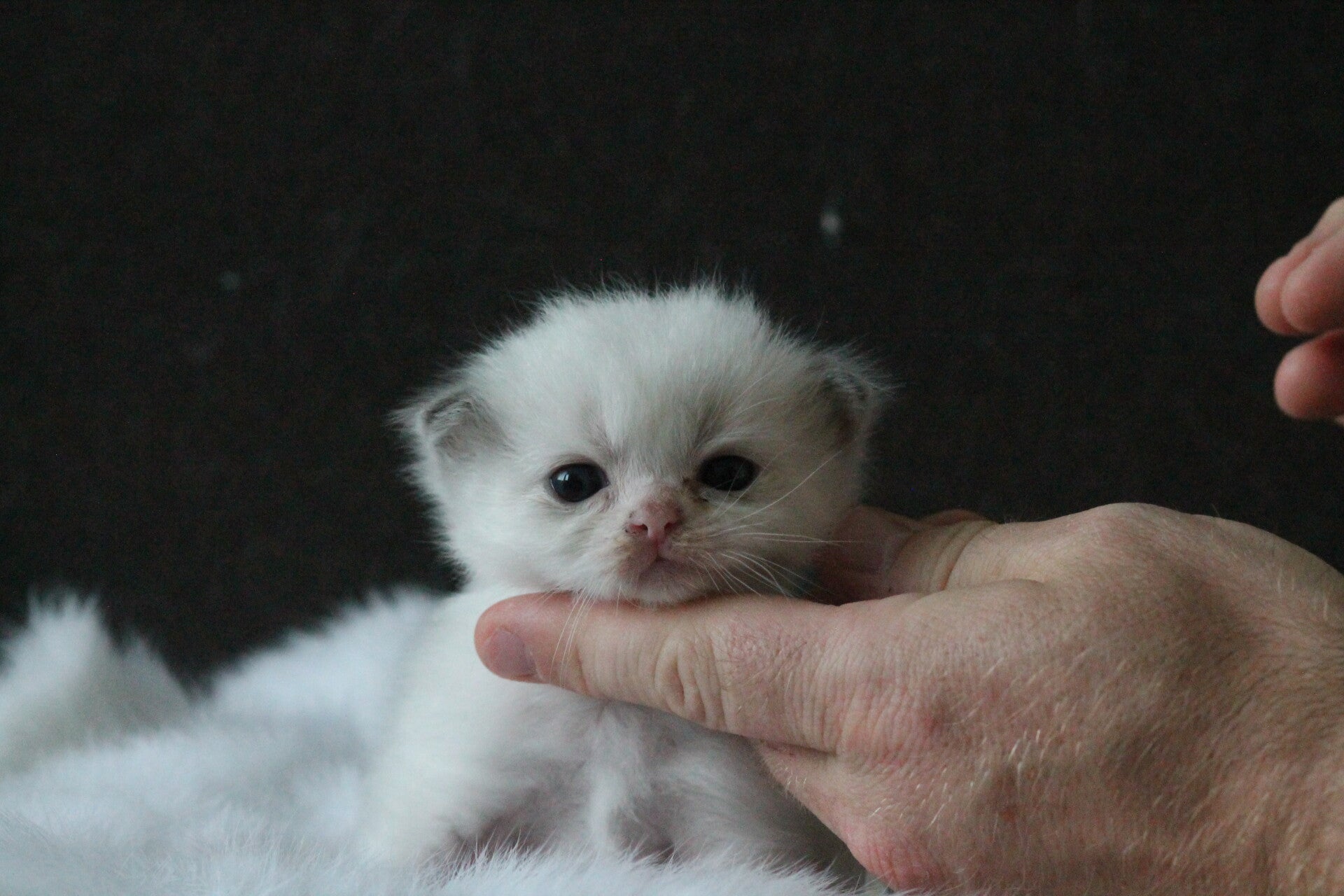 Op dinsdagavond was Hailey wat onrustiger, wat een teken dat het niet lang meer zou gaan duren. Maykel was die avond net thuis gekomen van vakantie. We hebben die nacht toch wat uurtjes slaap gepakt met elke 1,5 uur een wekker om te kijken hoe Hailey op dat moment was. Rond 6 uur werd ik weer wakker en toen lag Hailey tussen ons onder de dekens. Ik zag toen wel een paar persweeën. We hebben toen snel een handdoek onder haar gelegd en een pad. Helaas was dat al te laat want ze had daar al vruchtwater verloren. Toen het eerst kitten eenmaal kwam, sprong Hailey toch in de werpkist waar ze van het eerste kitten beviel. De 3 andere kittens kwamen daarna redelijk snel, echter op nummer 5 moesten we even wachten. De vruchtzak van kitten nummer 5 was helaas in de baarmoeder al gebroken en hij kwam in stuit. Hij kwam levenloos ter wereld, maar na wat wrijven begon hij toch naar adem te happen.
