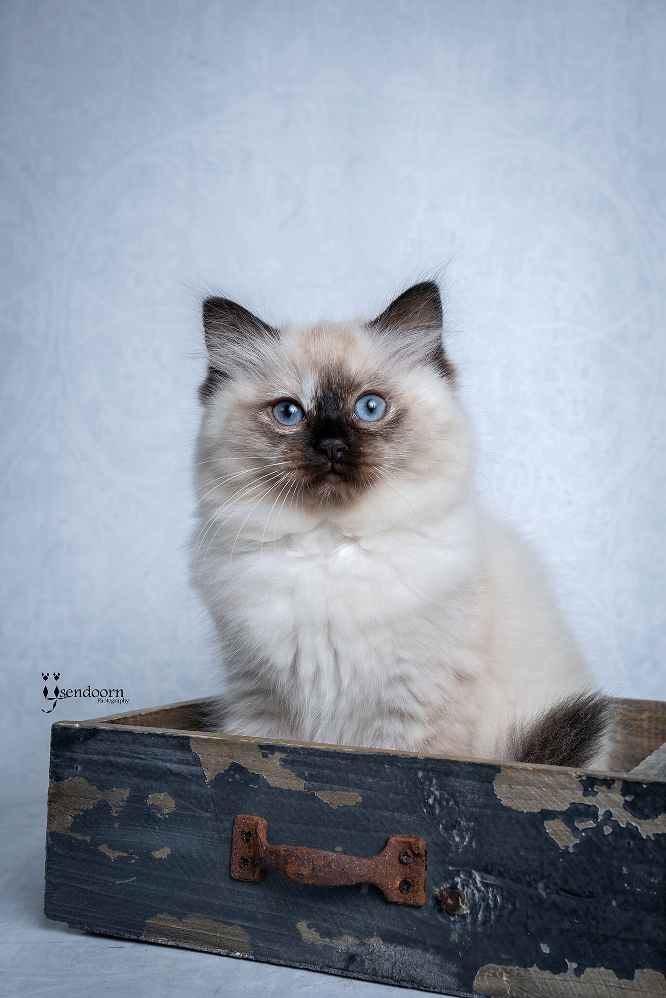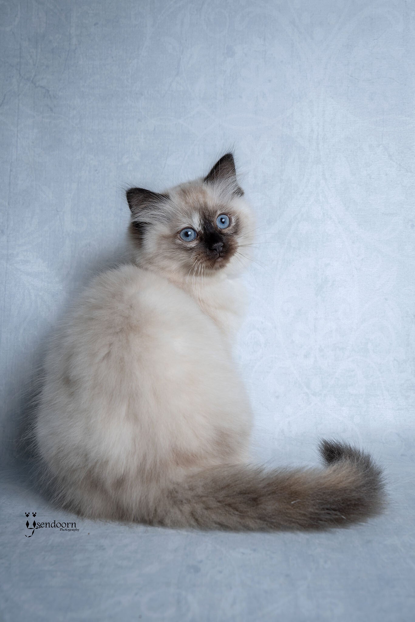 Ze is een mooie seal tortie point, dochter van Paige (Hovicastle Alizee) en Kasper. Ze heeft een zijdezachte vacht en echt een bunnycoat die je graag in de ragdoll wil zien.